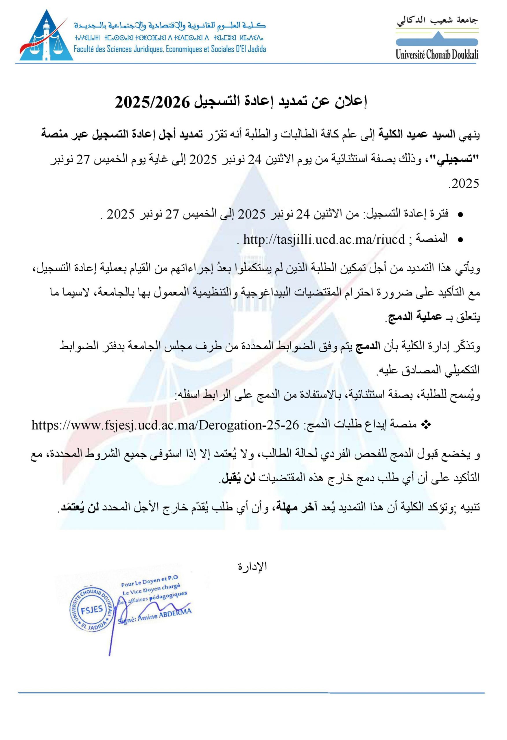لائحة المترشحين المقبولين لاجتياز المرحلة الأولى الخاصة بمباراة التوظيف في إطار متصرف من الدرجة الثانية تخصص: Sciences Economiques et Gestion دورة 16/11/2025