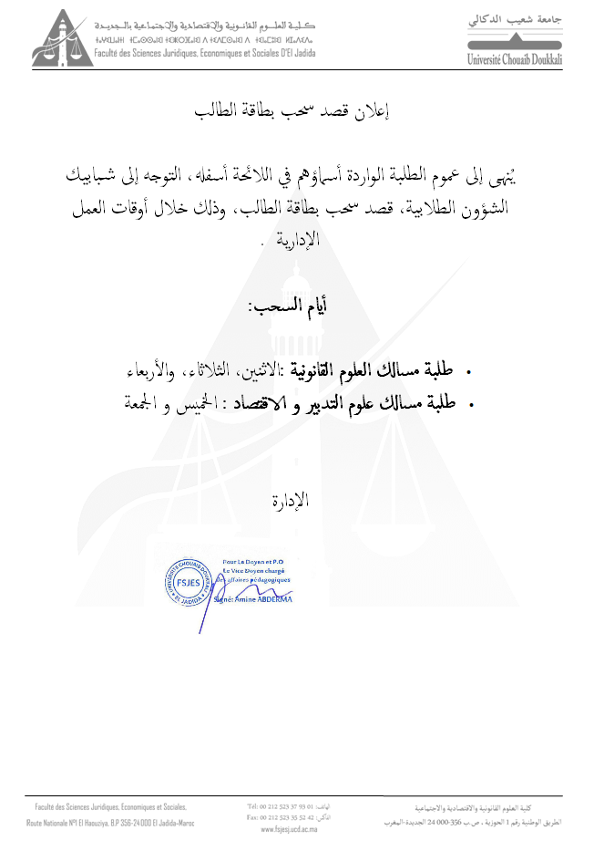 لائحة المترشحين المدعوين لاجتياز الاختبار الشفوي الخاص بمباراة التوظيف في إطار أستاذ محاضر الدرجة أ تخصص: القانون الخاص باللغة العربية، دورة 29/11/2025‎