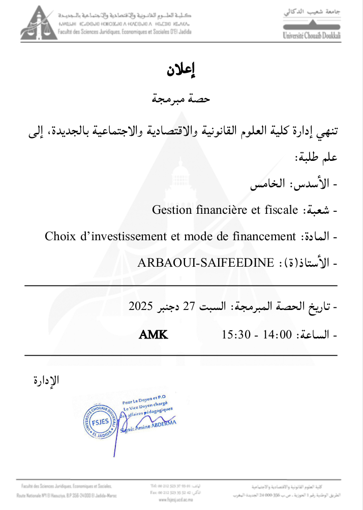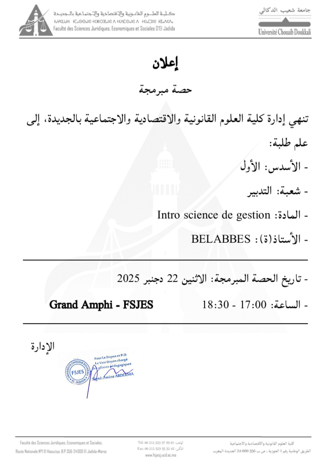 Tel : +212523379301 | Fax : +212523355242